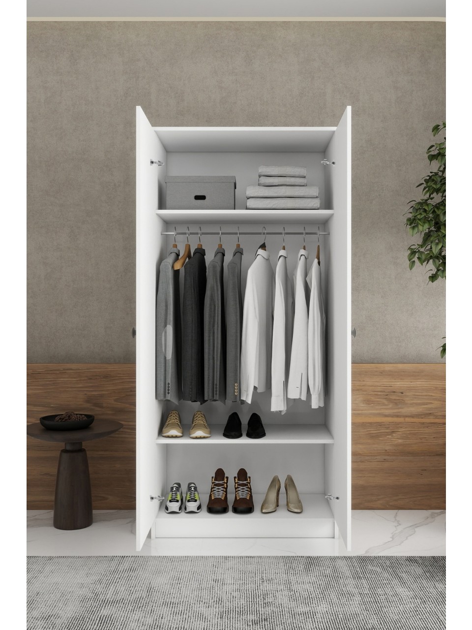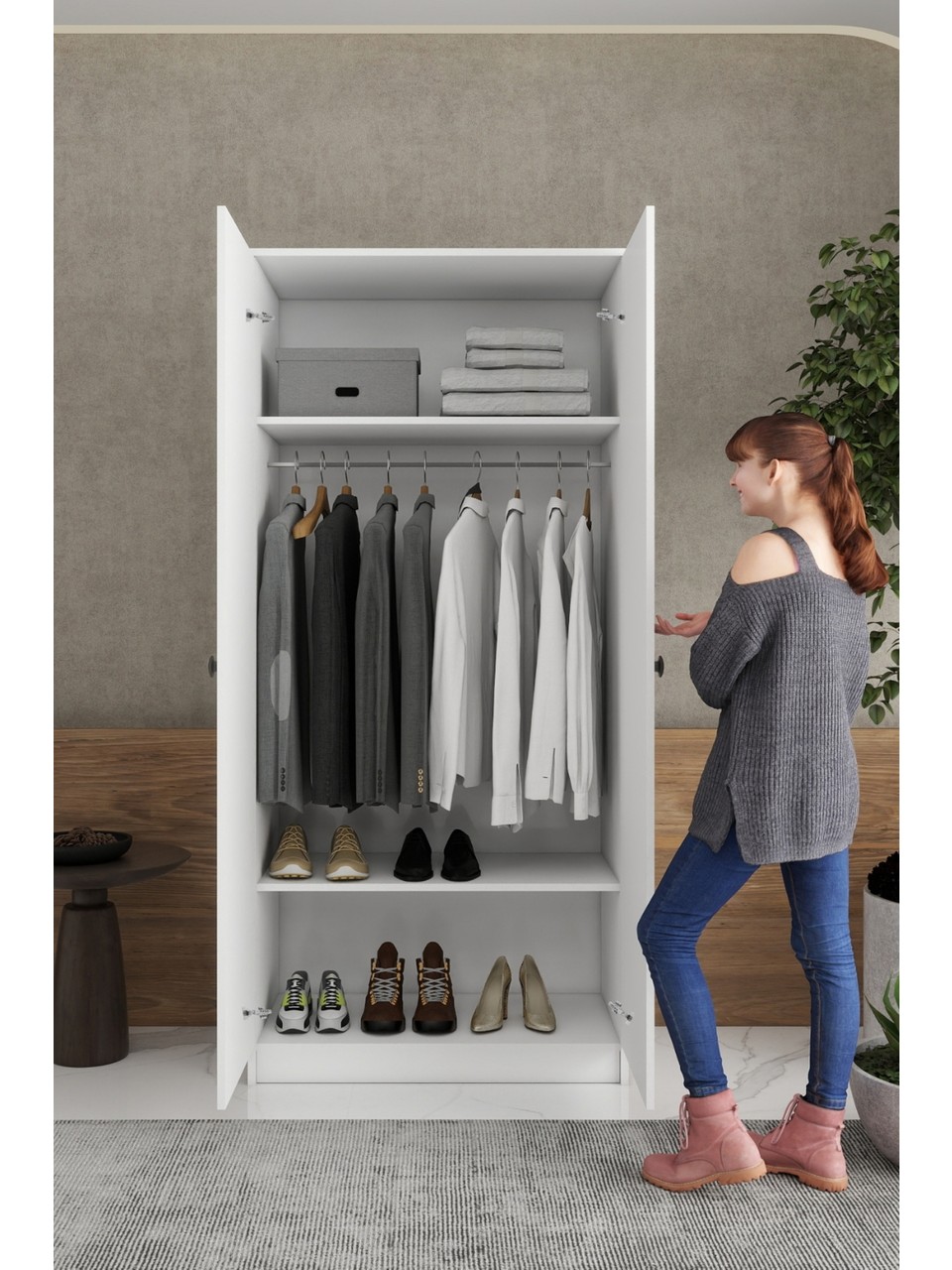 Modern ve kullanışlı tasarımıyla yaşam alanlarınıza düzen katar evinize aydınlık ve ferah bir görünüm sağlar. Askılı ve raflı iç dizaynı sayesinde kıyafetlerinizi, tekstil ürünlerinizi ve kişisel eşyalarınızı rahatlıkla depolamanıza olanak sağlar.